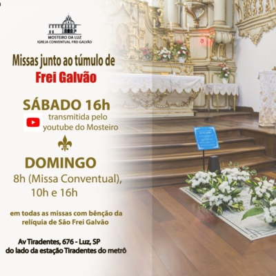Missa junto ao Túmulo de Frei Galvão- todos os sábados às 16h - Transmitida no Youtube do Mosteiro da Luz