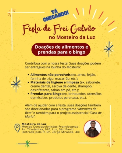 Doações e Festa de Frei Galvão